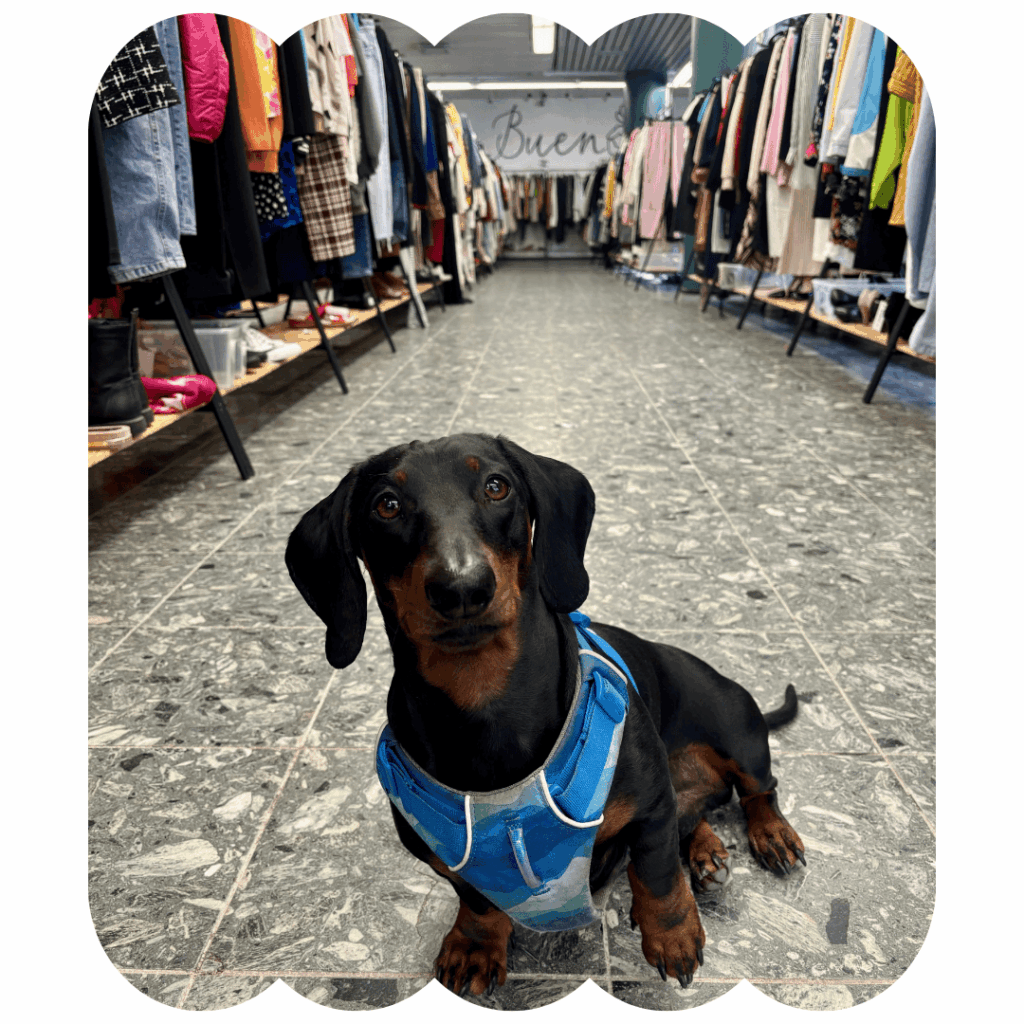 Tilamme ovat lähes 400 m2 ja olemmekin kirppisten taivas, kun etsit vaatekaappiisi uusia aarteita. Löydät meiltä yhteensä 144 rekkiä, joista bongata uusia löytöjä juuri sinun vaatekaappiisi. Käytössäsi on ostoskorit sekä kärryt. Kiltit koirat ovat myös tervetulleita shoppailemaan Buenolle.<3